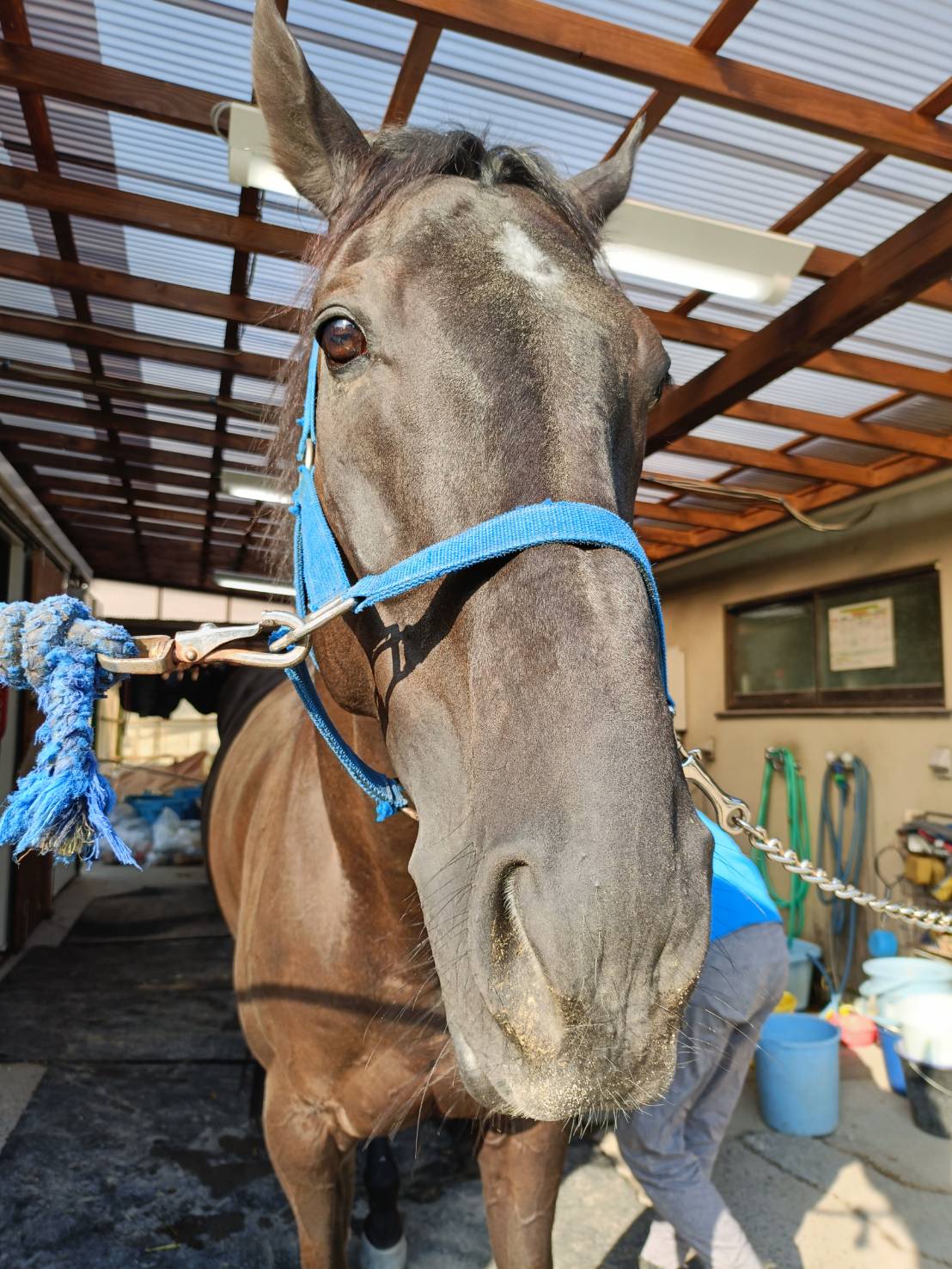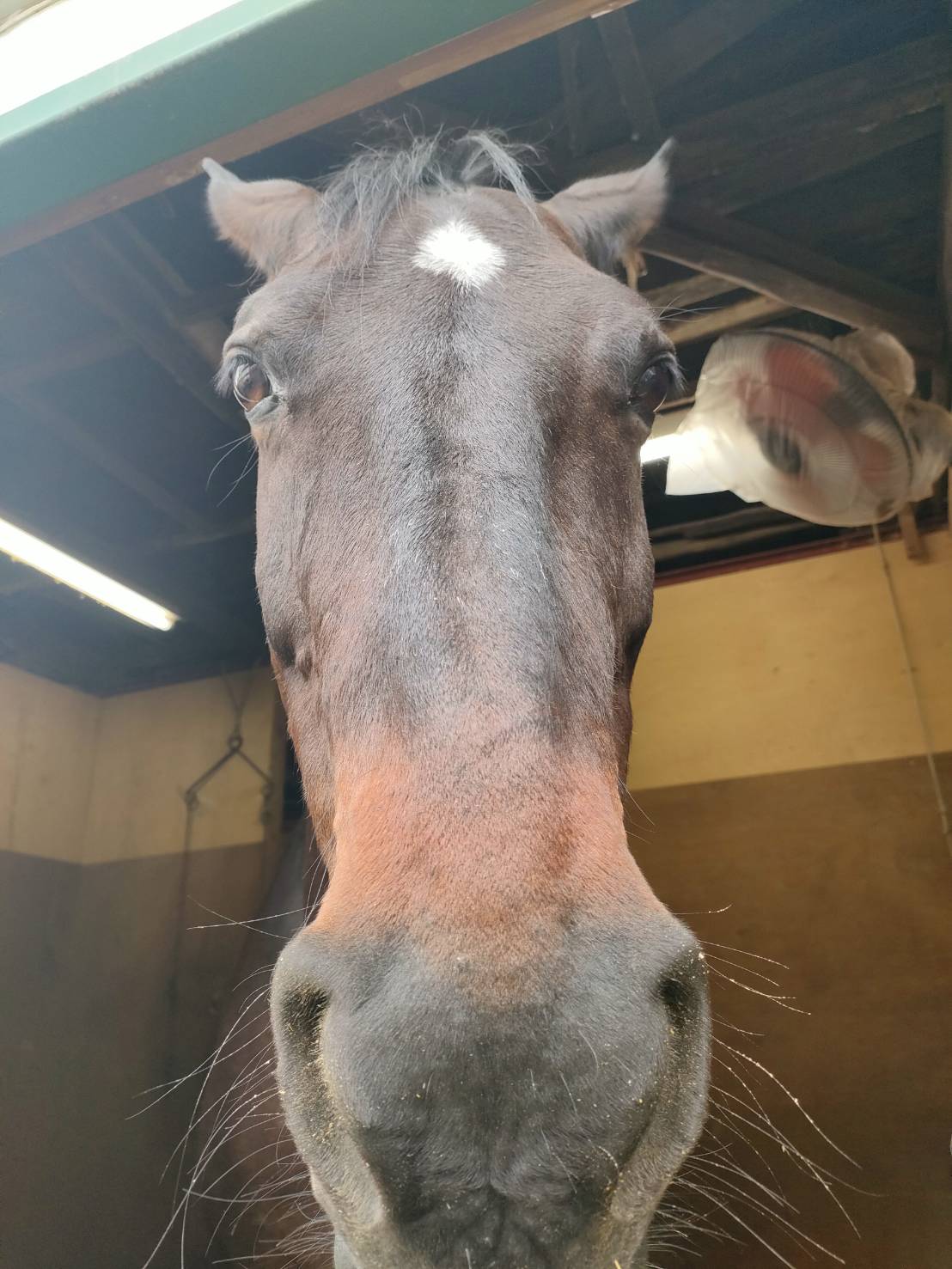 特徴 | 左目がキョロキョロしていてかわいいです。 農友会馬術部期待の競技馬!! |